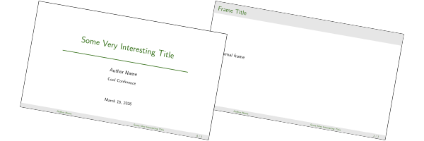 The LaTeX package beamertheme-light provides an aesthetic and minimal beamer style by redefining colors and fonts.