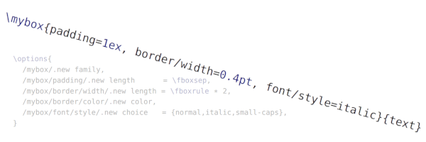 The options package provides easy to use key-value options for LaTeX package writers. It has a similar interface as pgfkeys with path options but comes with more built-in data types and more convenient support for families and searching.