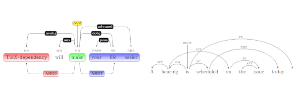 tikz-dependency – A library for drawing dependency graphs